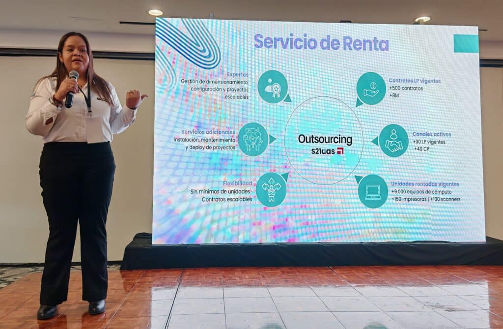 Nicolas Gallargo, también destacó la Unidad de Servicio de Renta o Outsoucing s21aas, liderada por Matilde Dillon, la cual permite la gestión de dimensionamiento, configuración y proyectos escalables; instalación, mantenimiento y despliegue de proyectos; sin mínimos de unidades; más de 500 contratos vigentes y más de 9.000 equipos de cómputo y más de 300 equipos entres impresoras y escaners rentadas al momento.