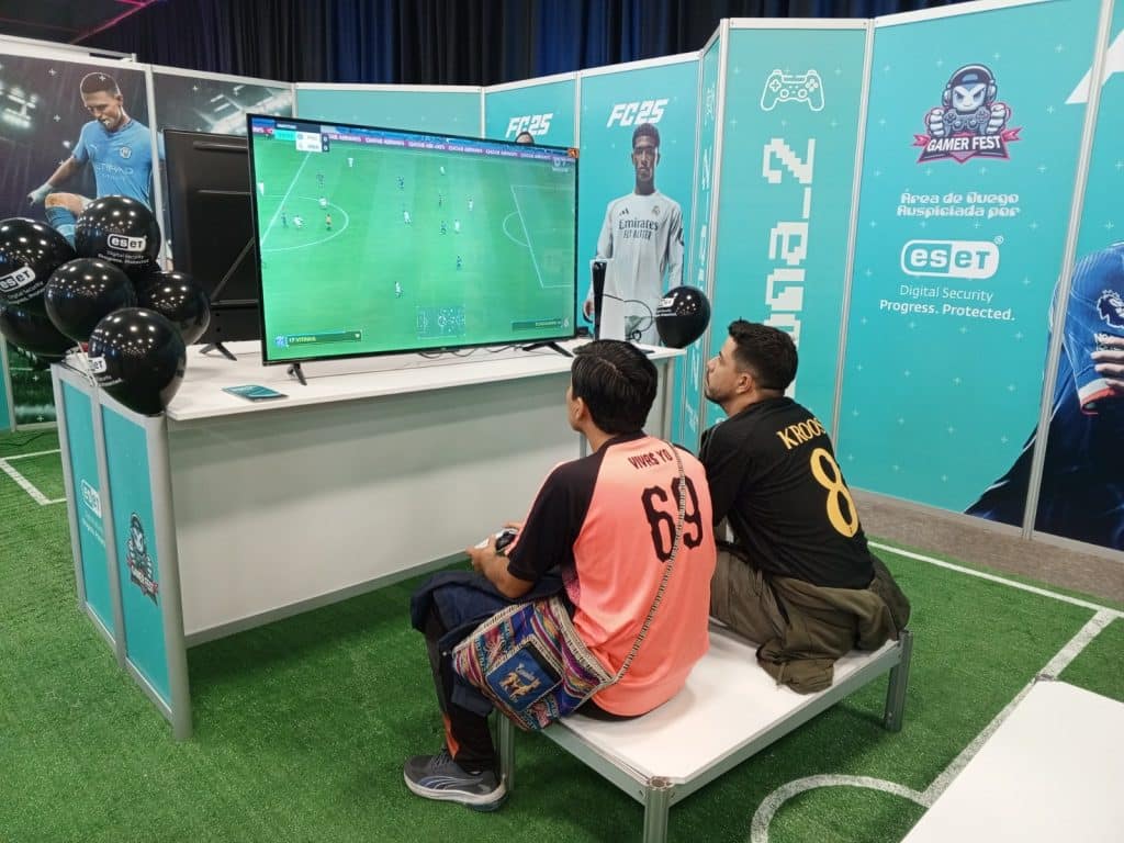 El stand de ESET tuvo la temática del juego de futbol FC 25 en donde los visitantes pudieron jugar intensas partidas mediante torneos y partidos amistosos.
