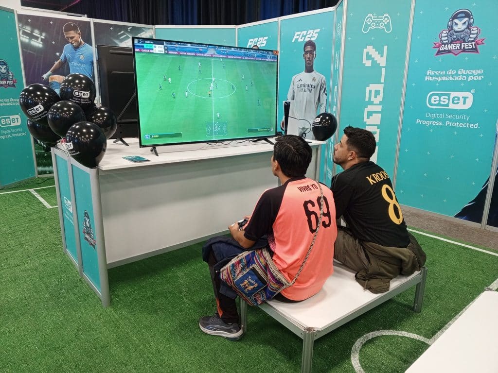 Por su parte el stand de ESET tuvo la temática del juego FC 25 en donde los visitantes pudieron jugar intensas partidas de futbol como torneos y partidos amistosos.