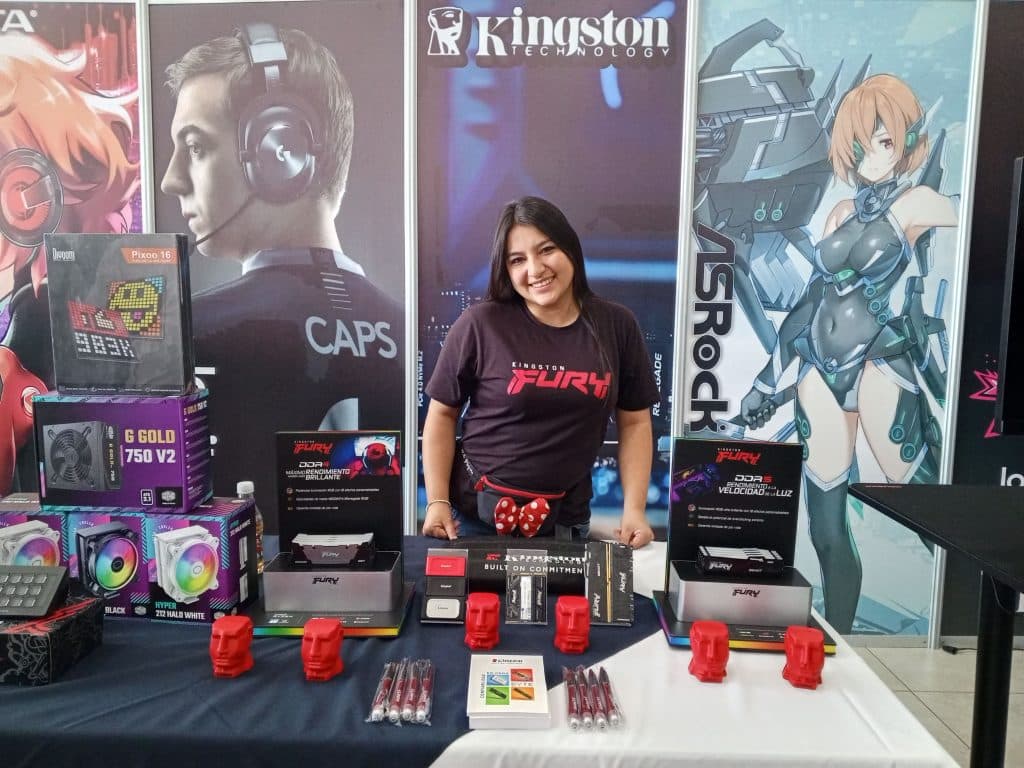 En su espacio de empresa, expuso equipos marcas gamer como Logitech, Kingston, Cougar entre otras importantes marcas gamers que son parte de su portafolio.