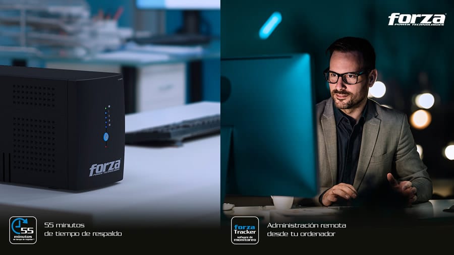 - Compatible con ForzaTracker: este software gratuito permite la administración remota directamente desde el computador. Brinda información sobre el estado de la UPS y realiza la desconexión segura del sistema ante interrupciones prolongadas en el suministro o problemas generados por el computador.