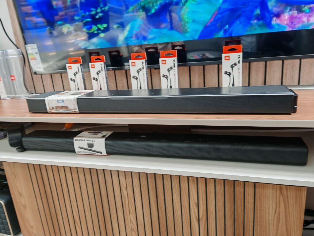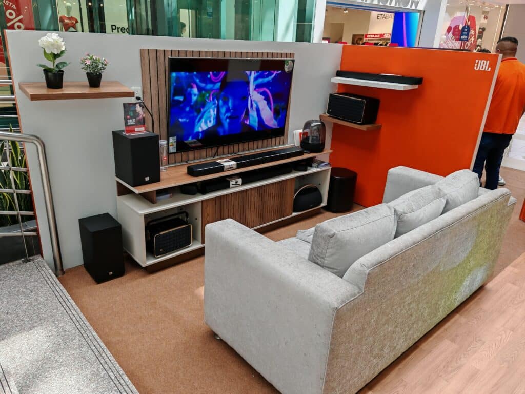 La primera zona estuvo enfocada en el home entertainment, donde JBL presentó sus últimos modelos de barras de sonido con audio envolvente, conectadas a pantallas de gran formato.
