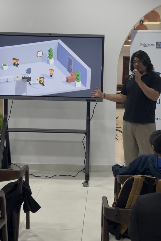 El evento, coorganizado por Openlab y CONQUITO, permitió que los asistentes exploraran de cerca los proyectos creados durante la última edición del Global Game Jam Quito.